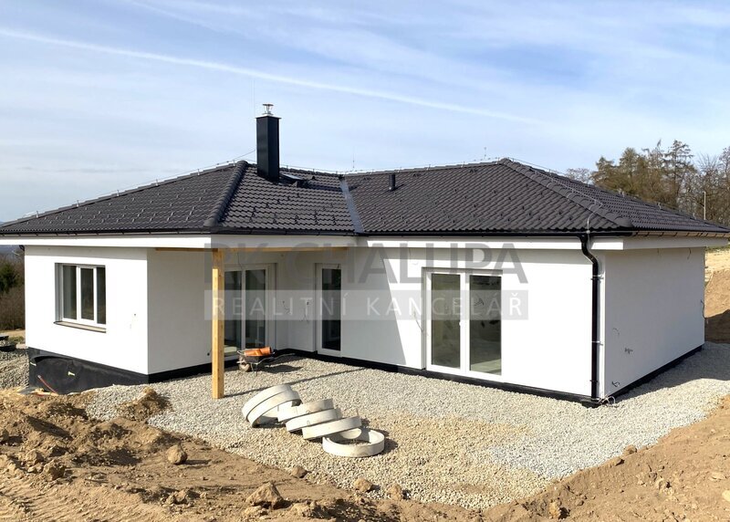 Nabízíme k prodeji novostavbu zděného nízkoenergetického rodinného domu, velikosti 4+1, na západním okraji obce Hosín, u Českých Budějovic, nyní realizace dokončení, včetně terénních a přístupových úprav, chodníku a terasy. Zastavěná plocha je 114 m2. Celkový pozemek o výměře 754 m2, Vnitřní dispozice domu zahrnuje hlavní obývací místnost s jídelnou, výstup na jihovýchodní terasu s krásným výhledem na Kleť a na hosínský kostel: Dále krbový s přívodem vzduchu. Kuchyně je samostatná s výstupem na terasu. Dva neprůchozí dětské pokoje. Ložnice prostorná s výklenkem na vestavnou skříň. Na chodbě výstup na půdu k úložnému prostoru, pochozí stav. Samostatné WC s umyvadlem. Koupelna bude dokončena, nyní lze ještě provádět individuální úpravy. V technické místnosti se šatnou i umístění plynového kondenzačního kotle se zásobníkem na teplou vodu. Ohřev vody s pomocí fotovoltaiky. Vytápění celopodlahové. Okna jsou v provedení „trojsklo“. Objekt bude vybaven venkovními žaluziemi s dálkovým ovládáním nebo přes aplikaci. Kanalizace obecní. Vnitřní provedení, tj. sanita, obklady, dlažba, podl. krytiny, parapety, obložky, bude dokončeno. Zastávka příměstské dopravy na návsi, ČD v dosahu, nájezd na dálnici po 3 km. Autem 10 min. do centra města. Videoprohlídku zhlédnete na našich webových stránkách.
