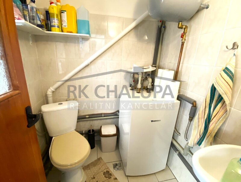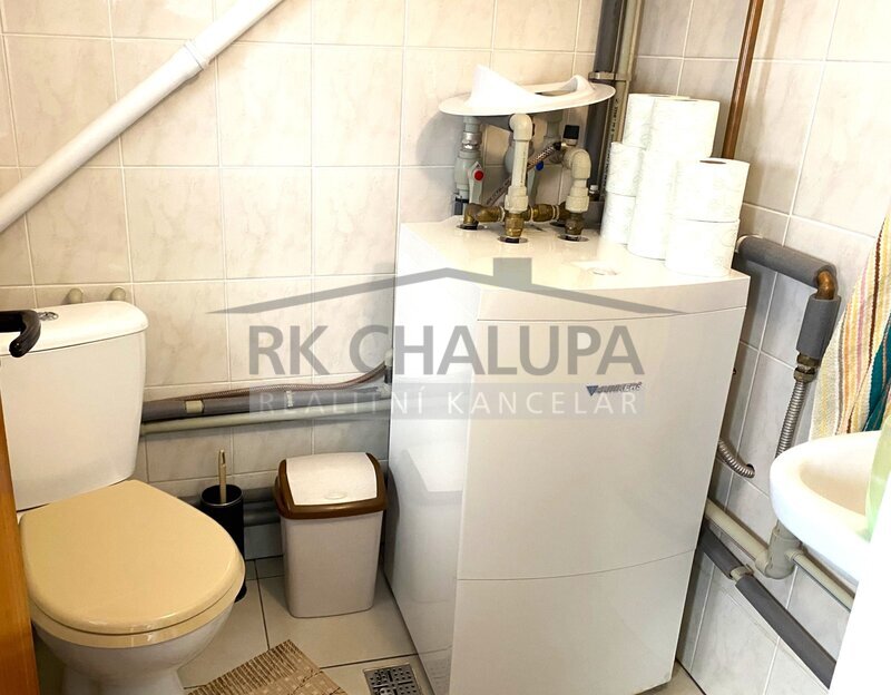 spodní WC, kde je umístěn bojler k ohřevu TUV. Schodiště do 1. patra na