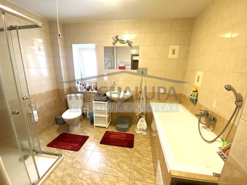 mikrovlnná a el. trouba. Koupelna také v novém provedení. Okno obýváku