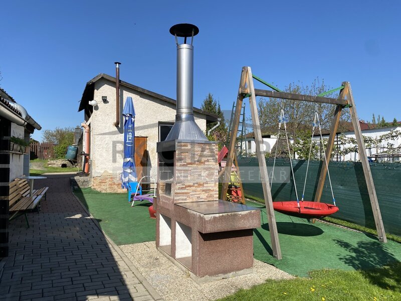 venkovní krb, dětské hřiště, skleník. Pozemek oplocený, udržovaný. MHD
