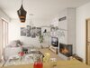 trojsklo, z obýváku výstup na terasu francouzským oknem. V obýváku je